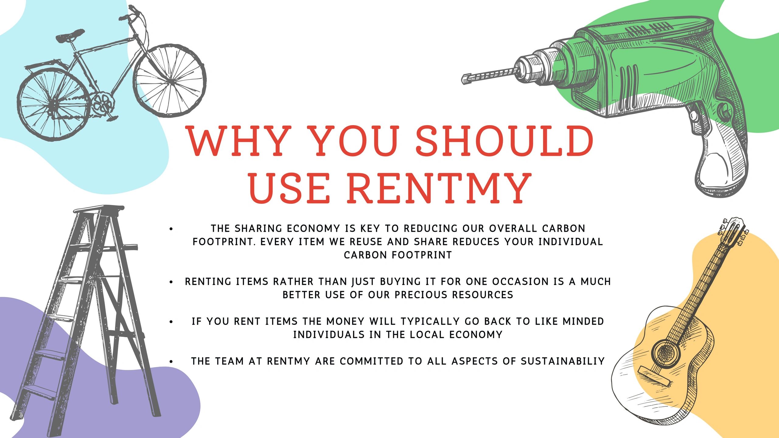 Switching to RentMy is a big step in the right direction. Not only do you reduce your carbon footprint, you will save money, support the local economy, and become part of a greater green revolution.